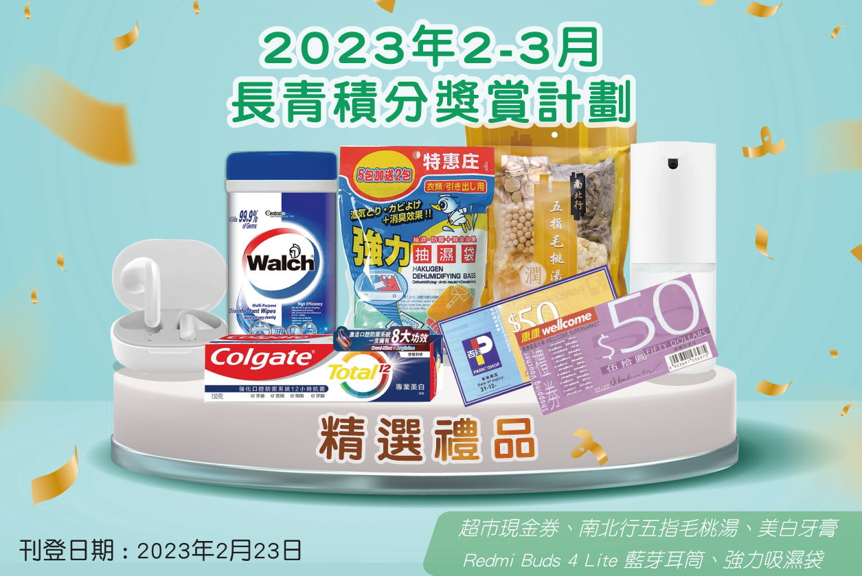 - 禮品只限長青網會員以長青積分換領,尚未成為長青網會員,請即登記(歡迎任何人士,沒有年齡限制):