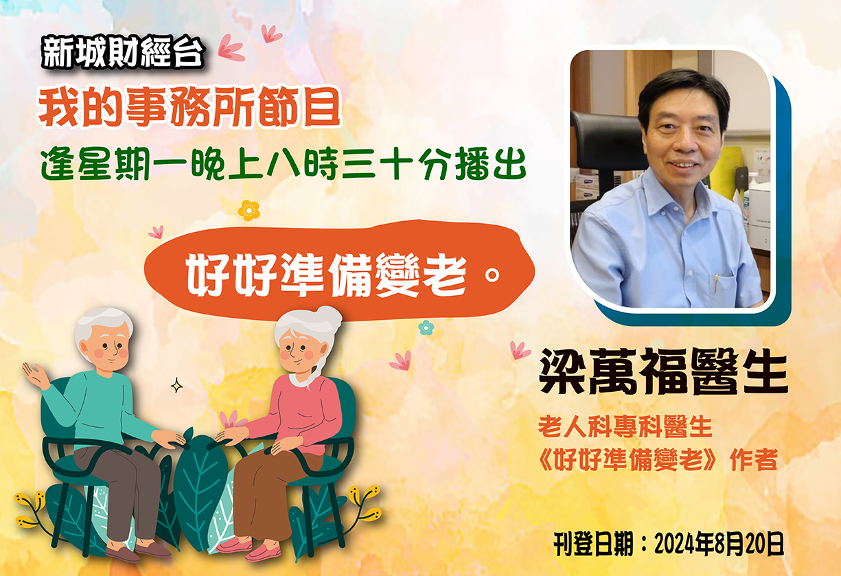 歡迎收聽「我的事務所」,與梁醫生一同探討變老這個永恆的人生課題。