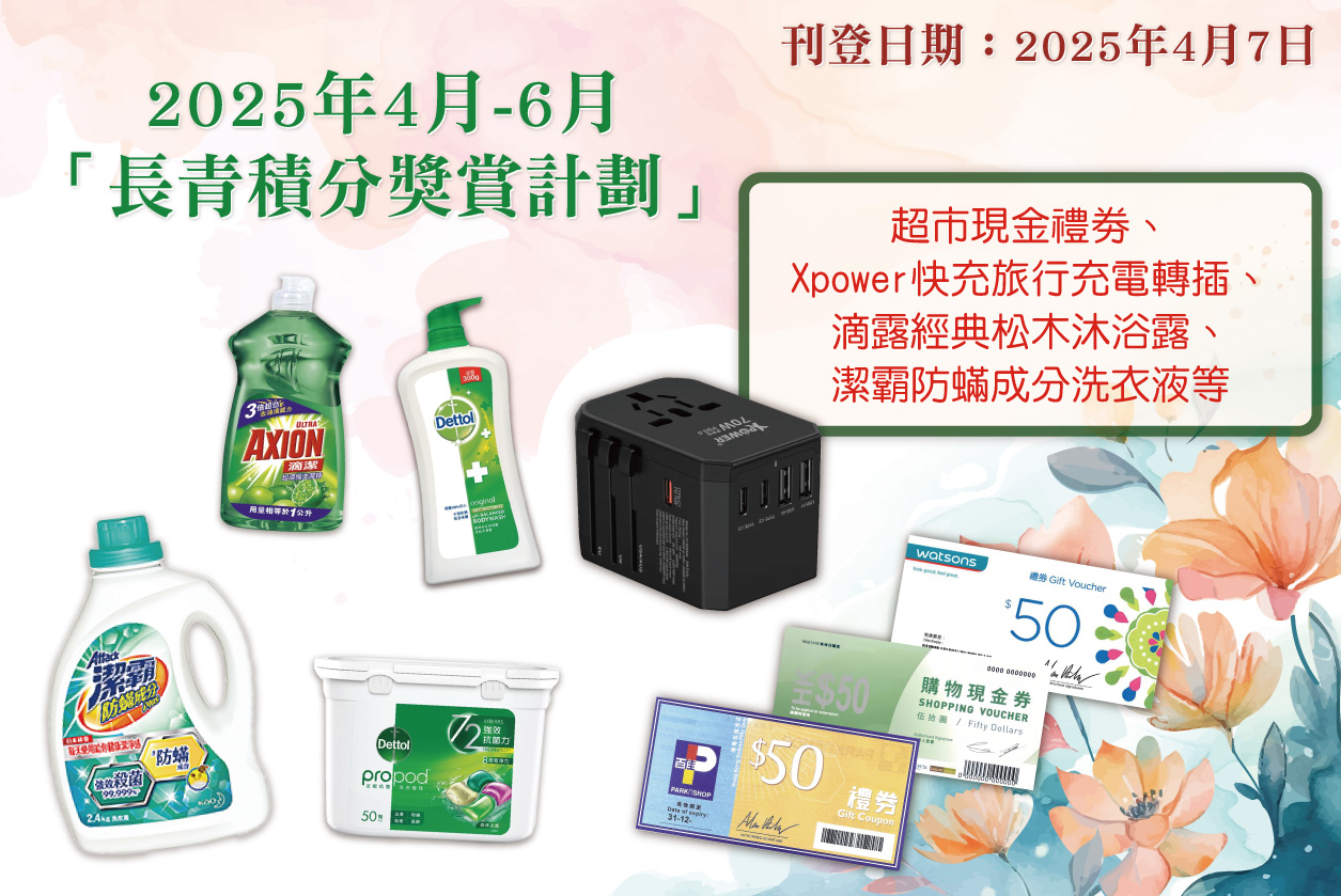 3. 禮品只限長青網會員以長青積分換領,尚未成為長青網會員,請即登記(歡迎任何人士,沒有年齡限制):