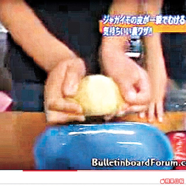 平時烚薯仔,煮熟後除燙手,薯仔皮會黏着甚難清除,最近發現網上有片段,將薯仔皮如剝蛋殼般剝出,輕輕鬆鬆可去薯皮。方法很簡單,在薯仔的中間圍圈割一周,記得不要割太淺,然後烚 10分鐘至熟透,之後放入冰水浸 10秒,這時可見薯仔皮的切口有明顯隙縫,用兩隻手將皮從兩邊捽開即可。點解會咁?因為熱力由薯仔中心散發出來,體積脹大,再浸冰水,薯仔遇冷即收縮,做到皮肉分離的效果。