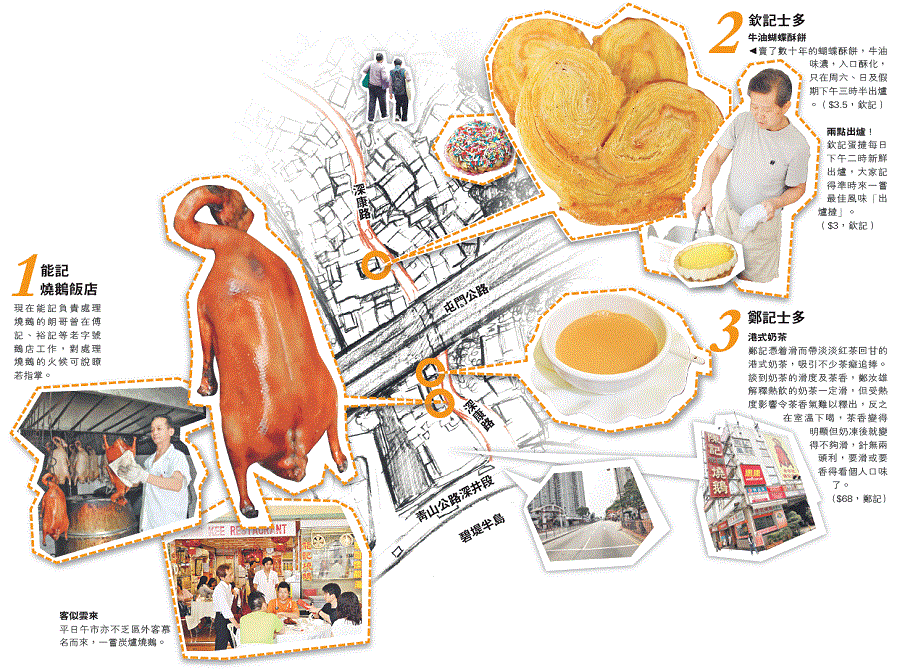 深井與燒鵝之間,幾乎畫上了等號,鑽進窄窄的深康路,不啖一口遠近馳名的炭爐燒鵝,簡直就對不起自己。但也可別讓名鵝獨霸你的五臟廟,留一點空間給限時出爐的隱世蝴蝶酥餅,和那最有性格的席前奶茶,才算沒有白來。今天為食一條街走到深康路上,一邊大啖美食,一邊細嘗深巷中老潮州兩代的半世紀滋味。