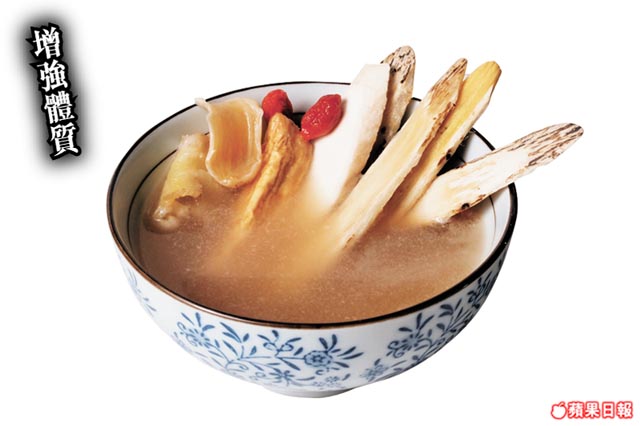 易出現鼻敏感、哮喘、氣管炎等,此湯能增強體質。 過敏體質:易受天氣、食物、環境等而產生過敏反應。 淮山 和胃益氣 味甘性平,可健脾益氣、和胃益肺、補中氣、止瀉。 材料 北芪/黨參/淮山/百合各 1両、杞子 30粒、玉竹 5錢、栗子/豬骨各半斤、粟米(切段) 2條、鹽適量 做法 1.栗子去殼,用熱水泡 1分鐘後去皮。 2.煲中放材料,加水至蓋過材料約 2吋,滾後轉小火煲 2小時,加鹽調味即可。 資料來源︰蘋果日報 0 0 0 書籤 留言 (0) 登入即可留言