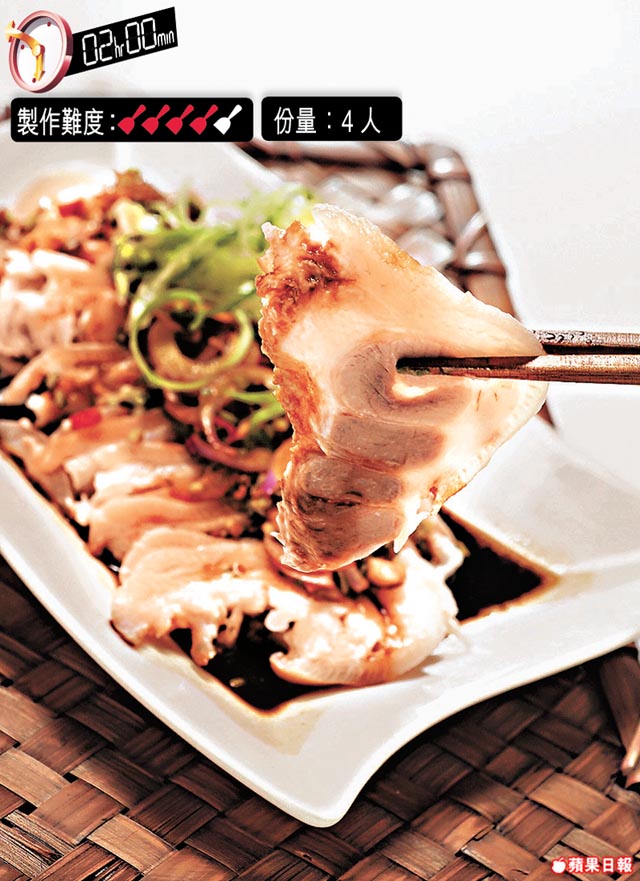 4.將醬料材料完全混合。把豬手切薄片,享用時淋上醬料即可。