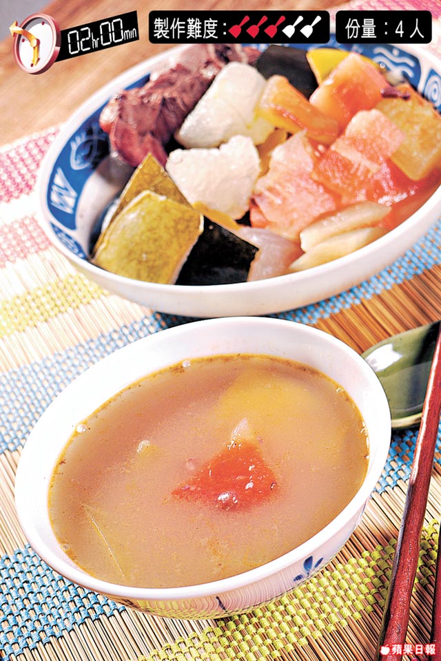 煲湯要用厚皮西瓜,故馬來西亞品種比較適合,再加黛安娜西瓜皮,湯水會更加清甜,而且更是夏天去水腫的佳品。 材料 馬來西亞品種西瓜肉(連白肉) 40克、黛安娜西瓜皮(不連白肉) 10克、冬瓜 50克、赤小豆 30克、西施骨半斤、水 1 1/2公升、鹽少許 做法 1.冬瓜起肉,瓜肉、瓜皮切件。 2.西瓜肉和瓜皮切件。西施骨汆水備用。 3. 湯鍋中放入水、西瓜、西瓜皮、冬瓜皮、赤小豆和西施骨,蓋上蓋以小火煲 1小時,再放冬瓜肉煲半小時,加鹽調味即可。 資料來源︰蘋果日報2011年7月14日 0 0 0 書籤 留言 (0) 登入即可留言