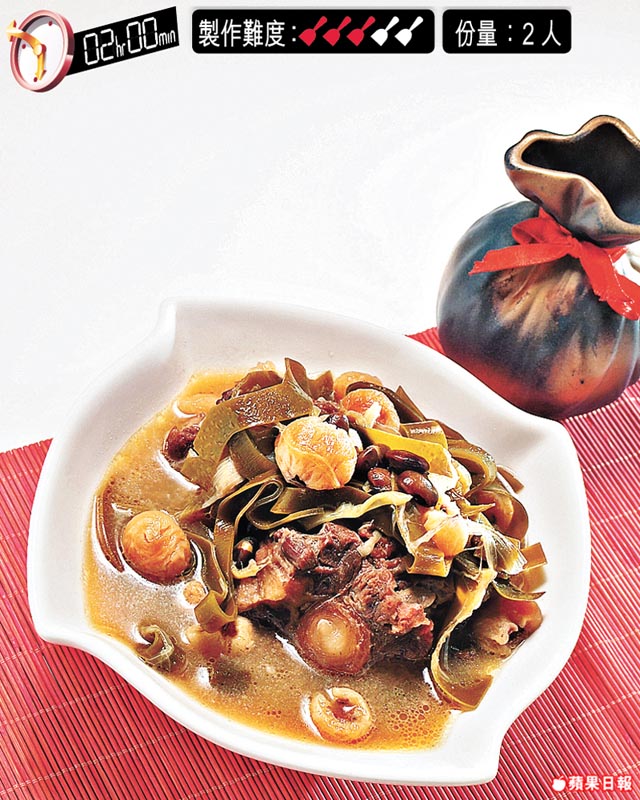 黑豆和牛尾均是補氣血的食材,加上海帶一齊煲,高纖之餘,飲過後面色也紅潤點!
