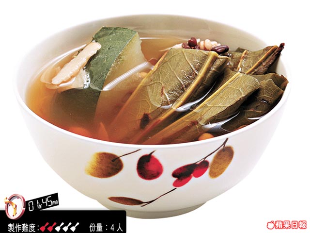 冬瓜有清熱祛暑、利尿化濕去煩功效,每周服 2-3次。 材料 冬瓜 600克、白扁豆/赤小豆/生薏米各 30克、鮮荷葉 1張、雲苓 20克、竹茹 50克、水 2 1/2公升、鹽或冰糖適量 做法 1.冬瓜洗淨外皮,連皮留籽切成小件。 2.鮮荷葉洗淨撕成 4份。 3.其餘材料洗淨,將全部材料加水以大火煮滾,改細火煮 1 1/2小時,加鹽或冰糖調味即成。 資料來源︰蘋果日報2011年8月6日 0 0 0 書籤 留言 (0) 登入即可留言 happybos 2025年01月28日 23:38 thx 1 舉報