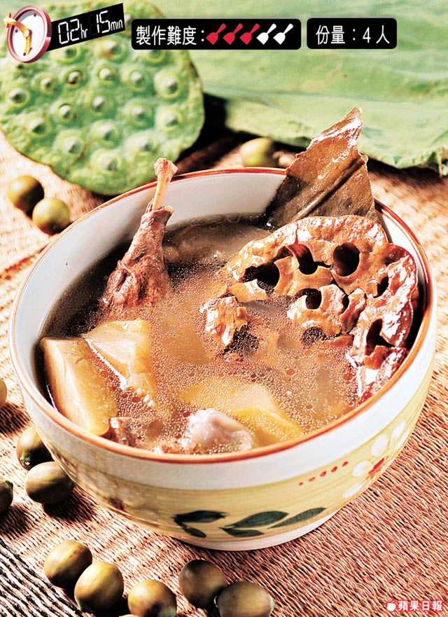 煲鴨湯一般用上米鴨,今次怪師傅則改用細細隻的水鴨,配上蓮蓬、荷葉及生薏米,清香之餘又祛濕!