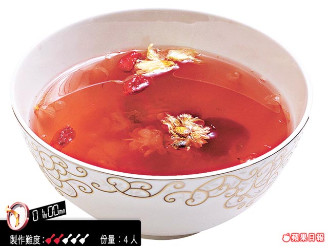 這個提神益氣、補肝腎醒腦養血的花果湯,能令面色紅潤,每天飲用直至效果滿意為止。 材料 花旗參/山楂/杞子各 10克、車厘子肉 100克、白菊花/雞蛋花各 8克、水 1公升、蜜糖 2湯匙 做法 1.山楂、杞子、車厘子肉、白菊花、雞蛋花加水浸 15分鐘。 2.除蜜糖外,將所有材料以大火煮滾,改細火煮 40分鐘。 3.隔渣取茶,待茶溫降至 60℃以下時,加蜜糖調味即成。 資料來源︰蘋果日報2011年08月06日 0 0 0 書籤 留言 (0) 登入即可留言 wah2021 2025年09月12日 10:17 thx 0 舉報 happybos 2025年01月28日 23:33 thx 2 舉報 happybos 2025年01月28日 23:31 thx 1 舉報
