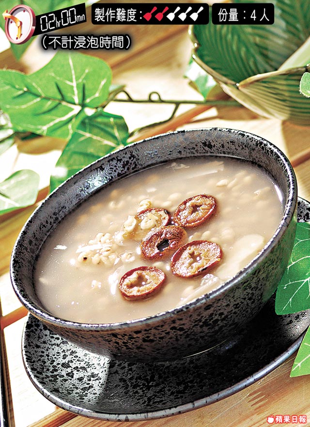 過了夏天,或多或少皮膚也會變乾、變黑,想快點回復本來潤澤美肌,多吃抗氧化食物,加上美白功效一流的百合和薏仁就更佳! 材料 山楂 3錢、馬蹄(去皮) 6粒、茯苓 4錢、百合/薏仁各 1両、水 8碗、惹味粉 1茶匙、鹽半茶匙 做法 1.馬蹄切半備用。薏仁泡水 4小時,備用。 2.煲中加水,滾後下山楂、馬蹄、茯苓、百合和薏仁,加蓋,以大火煲 10分鐘,轉細火煲 1 1/2小時。 3.最後加入惹味粉和鹽調味即成。 資料來源︰蘋果日報2011年9月14日 0 0 0 書籤 留言 (0) 登入即可留言 poon.hp 2025年01月01日 15:09 好 0 舉報