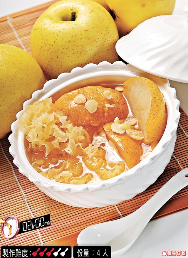 水晶梨肉厚多汁,梨味較天津鴨梨濃,直接吃用已能生津解渴,但加了南北杏和冰糖同燉,潤肺效果立時升級。