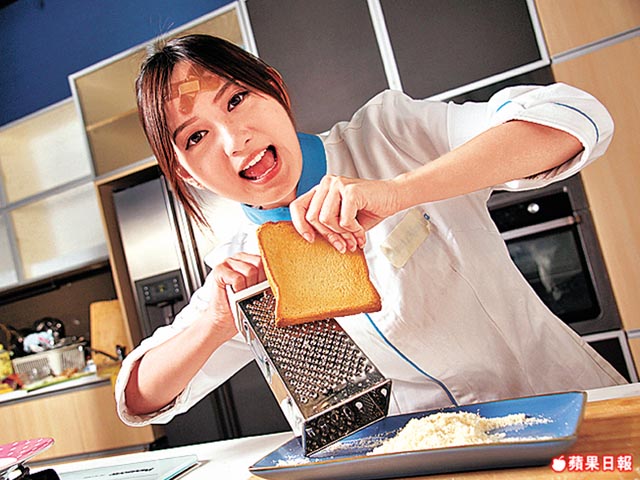 將已烘乾或變硬的去邊白方包,用蘿蔔刨磨成粗粒,毋須太碎,可保持不均勻質感。
