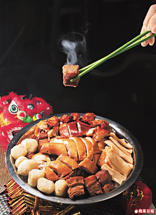 以沙薑、南薑等醃好浸熟的五味雞,配燒鴨,口感豐富。