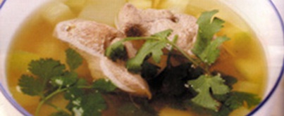 清水煲滾,放入冬瓜粒和節瓜粒,滾 3 分鐘,加入豬膶,以中火滾至熟。