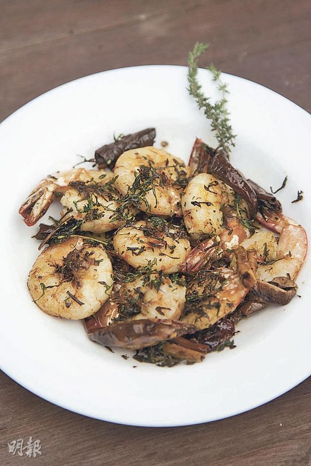百里香和檸檬葉沒搶主角風頭,還突出蝦碌的鮮味,香草、調味料、辣椒乾與蝦湊在一起,味道沒想到是如此匹配。