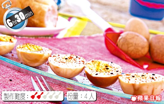 滷蛋做法簡單,且方便攜帶,吃時撒上七味粉,味道更佳。 材料:雞蛋4隻、滷水汁/水各200毫升、七味粉適量 做法: 1.雞蛋烚熟,過冷河,輕敲裂蛋殼。 2.煲中加入滷水汁、水,放入雞蛋浸6小時或至過夜待入味。 3.雞蛋去殼後切半,撒上七味粉即可。 貼士:滷水汁可翻滾再用,也可按個人口味加點紹興酒、老抽和冰糖。 < 資料來源︰蘋果日報2012年07月20日 0 0 0 書籤 留言 (0) 登入即可留言 wah2021 2025年10月23日 10:37 thx 0 舉報 poon.hp 2025年02月03日 10:38 好 1 舉報 happybos 2025年01月31日 22:29 thx 1 舉報 happybos 2025年01月10日 17:17 thx 1 舉報