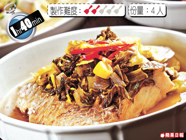 鯇魚腩1件、潮州酸菜1/4個、胡椒粉半茶匙、糖1茶匙、白醋2茶匙、雞湯200毫升