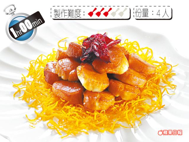 帶子12粒、玫瑰花瓣(炸脆)3-4塊、麻油少許