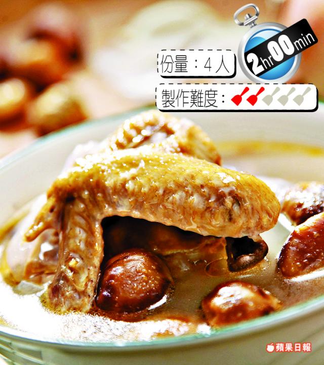 洋葱半個、栗子10粒、雞半隻、水1,000毫升