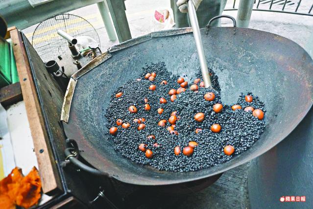 糖砂炒栗子歷史悠久,早在三千年前中國北方出現,方法跟我們現在街上看到的相近。先在鑊中放入黑色的砂,大火把砂子炒熱後才放入栗子拌炒,因為砂子受熱了,就會把熱力傳到栗子,讓栗子受熱更均勻。至栗子炒至半熟,便加入砂糖炒勻,聞到栗子香便知可以吃了。炒栗子是連殼炒的,放糖又是甚麼原理呢?原來因為砂炒栗子時,栗子表面的雜質會被打磨去掉,放糖後雜質便會黏附到砂子上,令栗子變得乾淨和光滑!由於人手炒栗子始終需要很大的體力,現在很多小食店會改用炒栗子機,只要放入栗子、黑色砂子和砂糖,省掉人力和看火的時間。