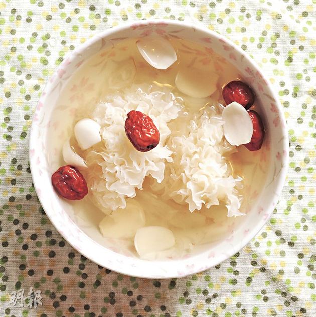 (3)所有材料放入鍋中,煲一個半小時左右,直至湯汁略黏稠,銀耳透明即可