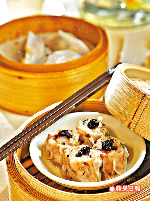 3.燒賣上放一點黑松露,入蒸爐蒸4分鐘,完成。
