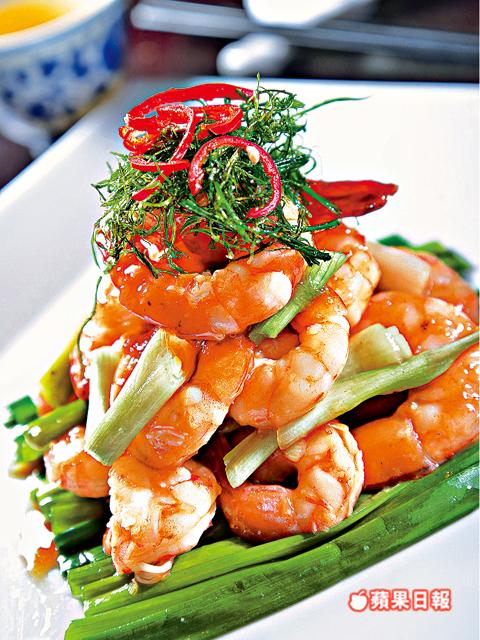 紅頭蔥的葱頭最可口,有乾蔥的味道,最好切成大段,配搭鮮味的食材。今次師傅用上中蝦配襯,中蝦只用少許調味,令紅頭蔥的味道依然突出,那種爽口與香甜,與彈牙的鮮蝦很夾!