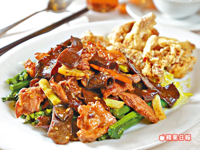 4.鴿肉拉油至七成熟,撈起。另燒熱鑊,下油,下木耳,加鹽、豉油、糖、米酒,炒片刻,再將鴿肉放入,兜勻後用生粉水埋薄芡便成。