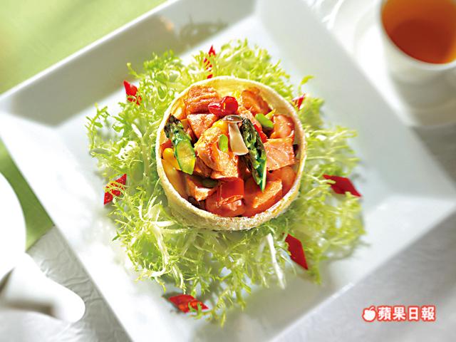 鮭魚即三文魚,含有豐富奧米加3營養成份,但三文魚熟吃有少許魚腥味,配上辣椒同炒,便變得惹味又香口。想更有益的話,不妨再加少許松子仁同炒。