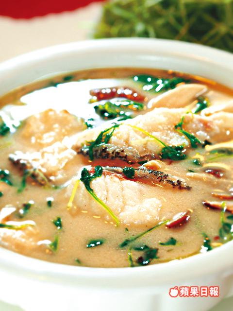 1.石斑起肉切塊,留骨備用。燒紅鑊,下少許油,煎香魚骨。