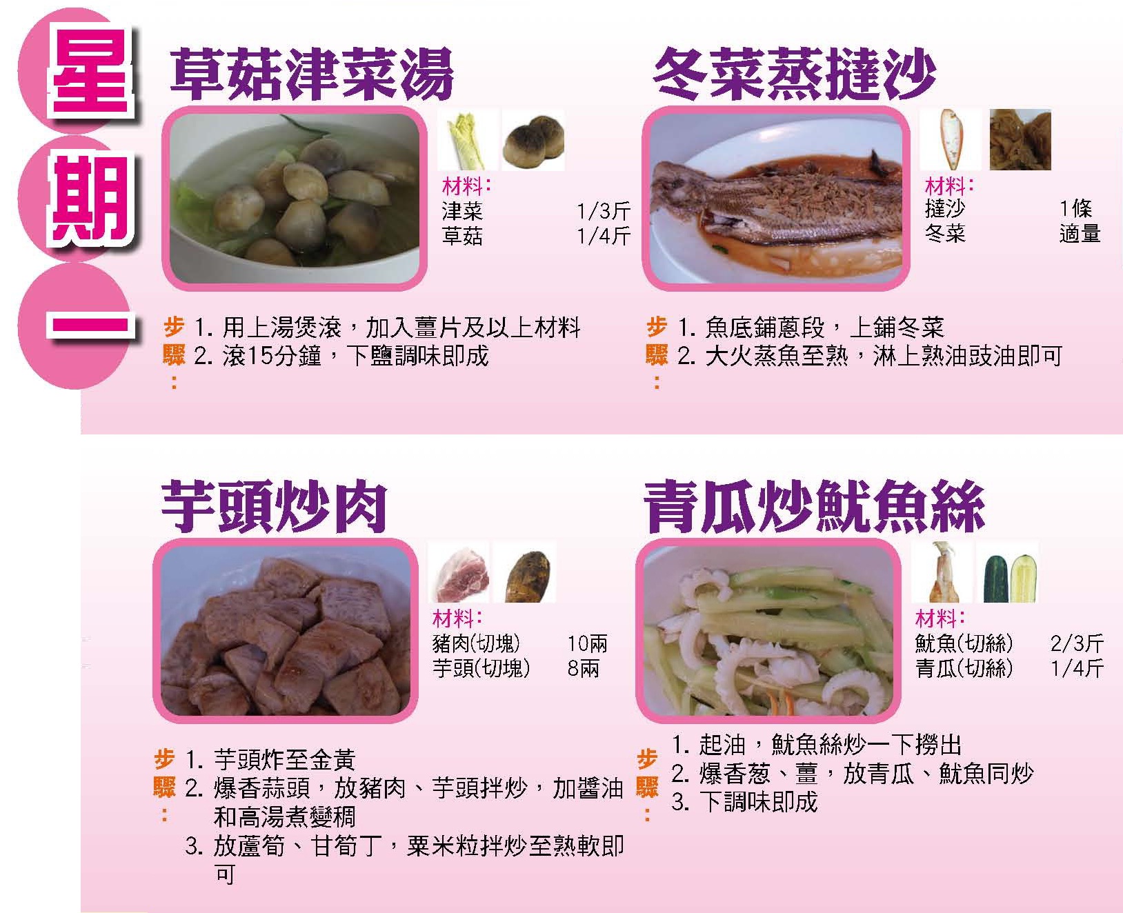 本週每日三餸一湯食譜推介: