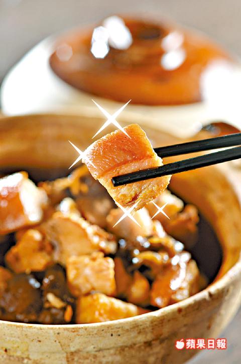 貼士:豬踭肉肌肉組織比較結實,筋膜及結締組織較多,烹煮的時間長一點都不會老,而師傅先蒸半小時再燜,可節省燜腍的時間外,蒸出來的肉汁,亦是最佳的天然調味料。
