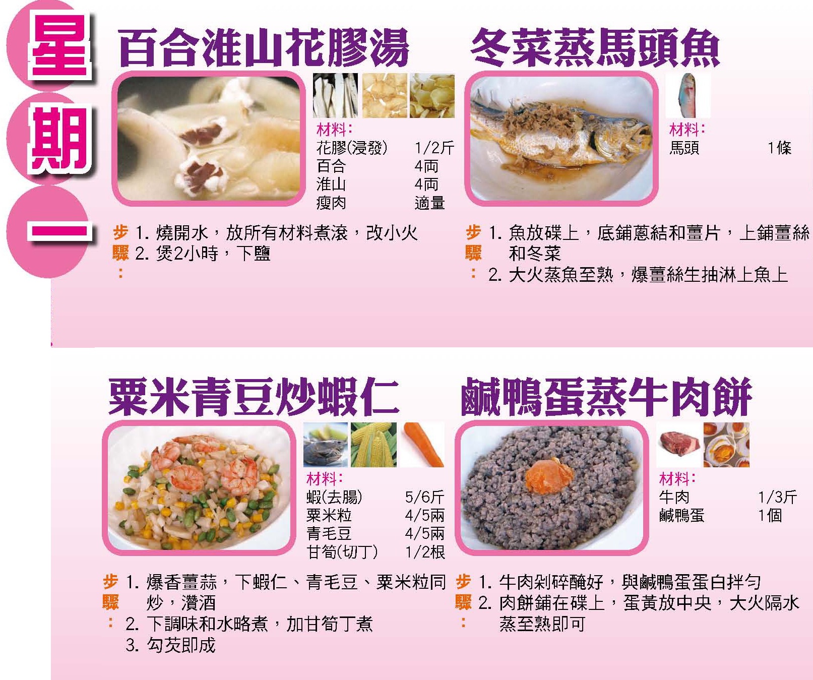 本週每日三餸一湯食譜推介: