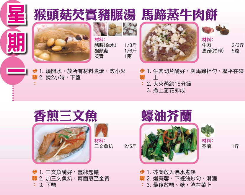 按此可閱覽英文、菲律賓文及印尼文食譜