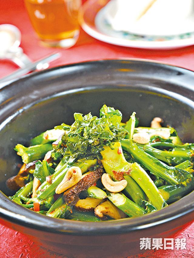 現在的嫩芥蘭全棵可吃,將菜莖快炒做啫啫煲,配上炸腰果和鮮菇紅椒,帶微辣卻不油膩,較配合現在嫩菜莖的爽脆口感。而平日不被重視的芥蘭葉,則炸脆同吃,風味別具一格。煮芥蘭時加入少許黃糖,可減去獨特苦味又保持翠綠。
