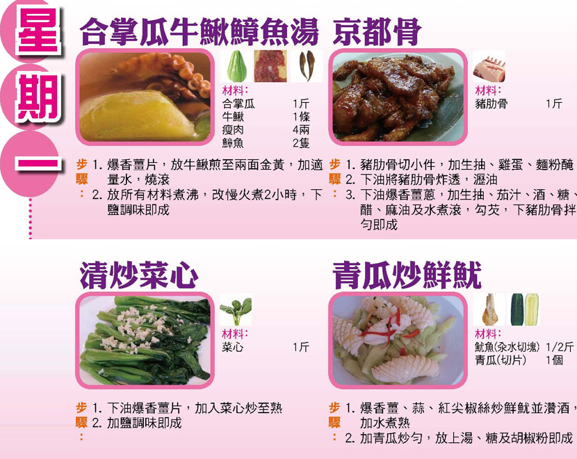 按此可閱覽英文、菲律賓文及印尼文食譜