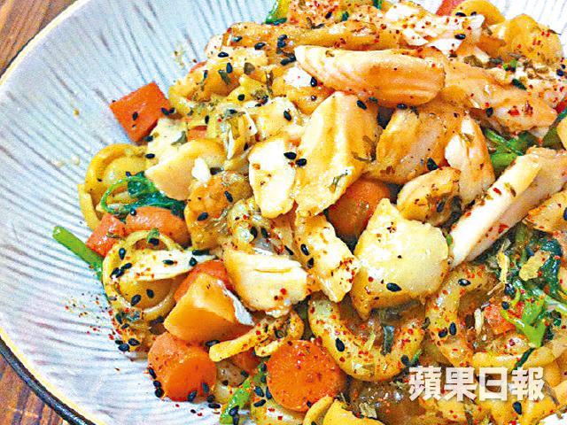 其實夜放工去超市買菜亦有好處,因為常會無意碰上特價時段。那晚路經Market Place by Jasons,便看到特價鹽燒三文魚腩餸菜包,預先醃製好的三文魚腩約200克,回家一煎即可,一份夠兩人吃,特價才約30元。再找出雪櫃常備的甘笋,煮剩的半包莧菜(約100克)、醃脆瓜和日式燒肉醬汁,便可快速做出兩人份的簡單晚餐,只花15分鐘便完成。