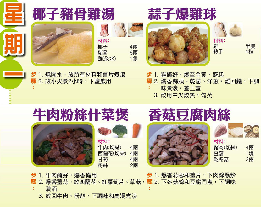 按此可閱覽英文、菲律賓文及印尼文食譜