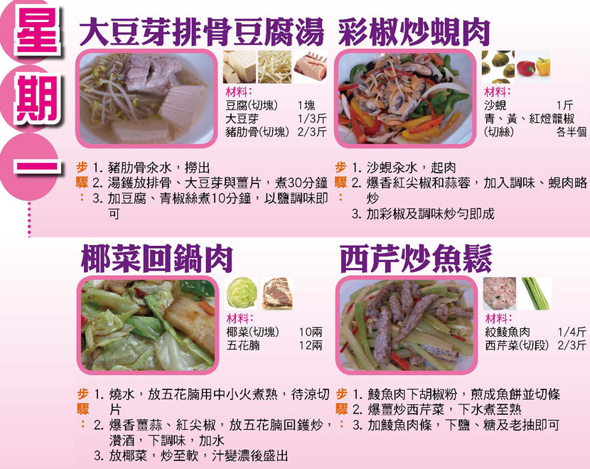 本週每日三餸一湯食譜推介: