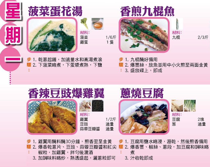 本週每日三餸一湯食譜推介: