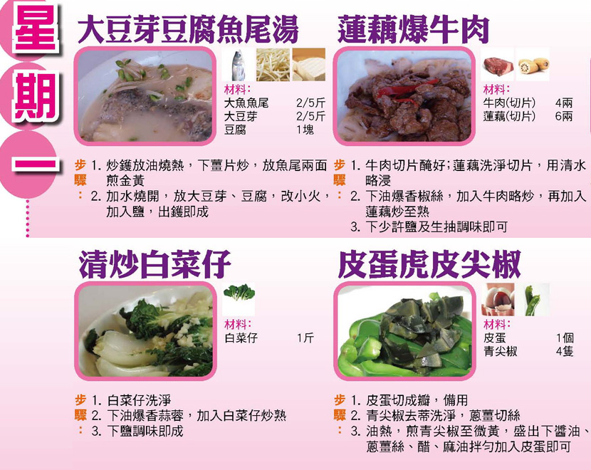 本週每日三餸一湯食譜推介:
