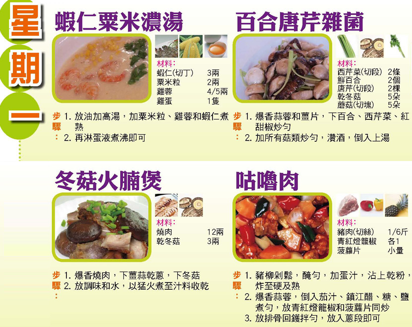 按此可閱覽英文、菲律賓文及印尼文食譜