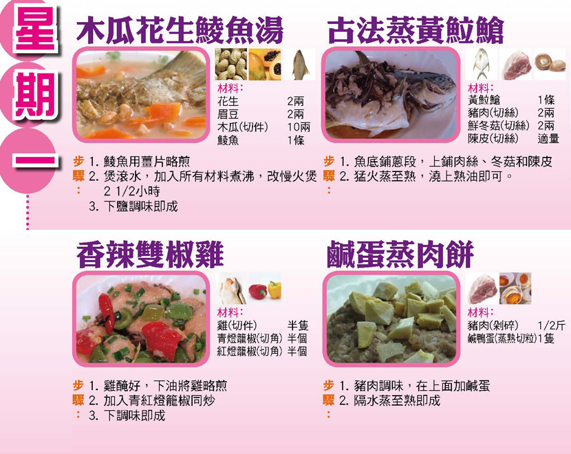 本週每日三餸一湯食譜推介:
