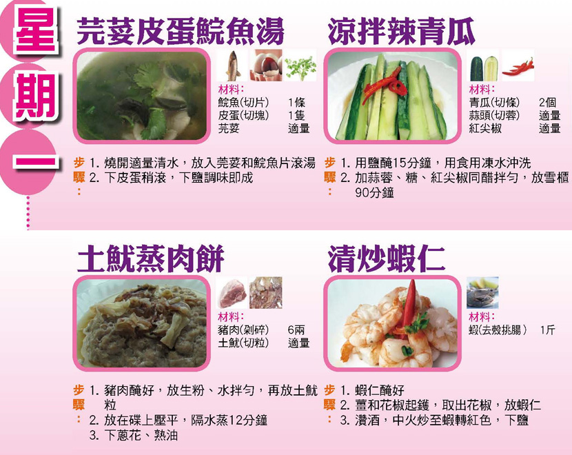 本週每日三餸一湯食譜推介: