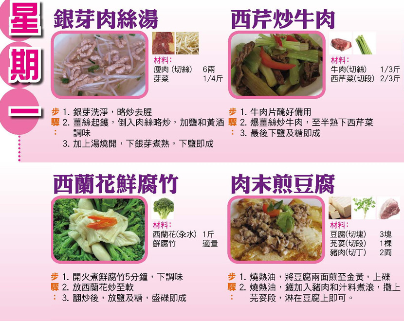 本週每日三餸一湯食譜推介:
