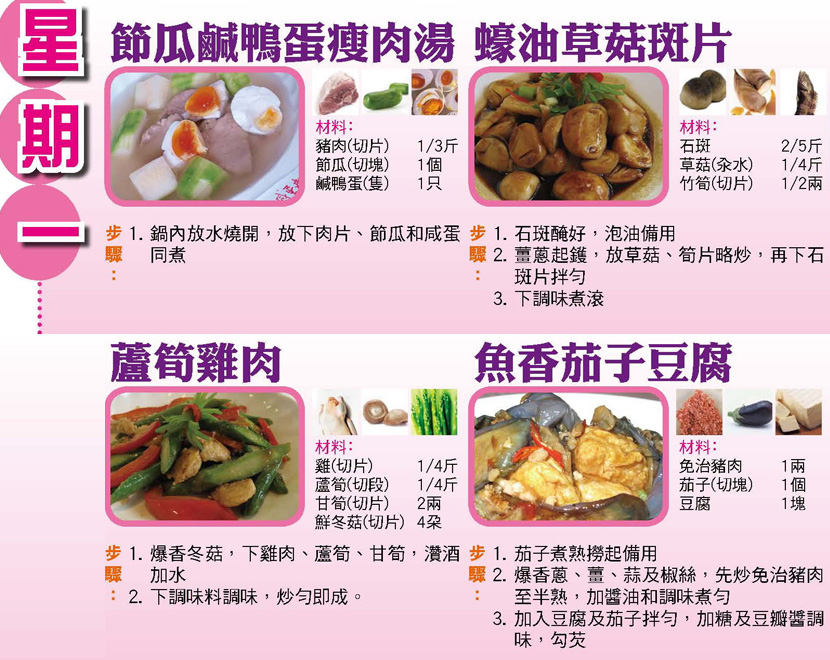 按此可閱覽英文、菲律賓文及印尼文食譜