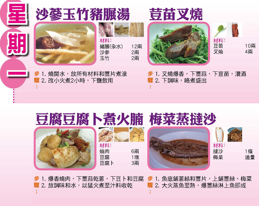 本週每日三餸一湯食譜推介: