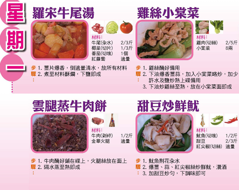 按此可閱覽英文、菲律賓文及印尼文食譜