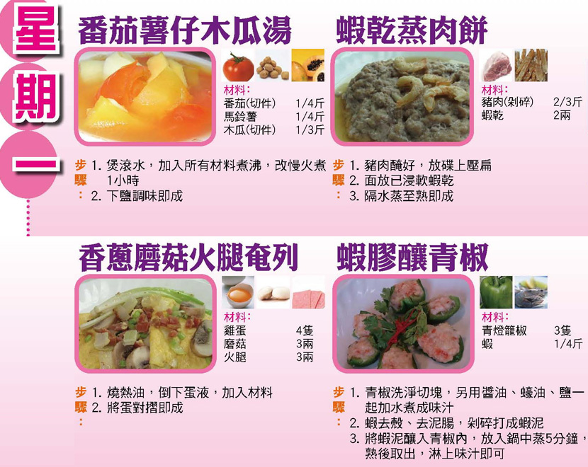 按此可閱覽英文、菲律賓文及印尼文食譜