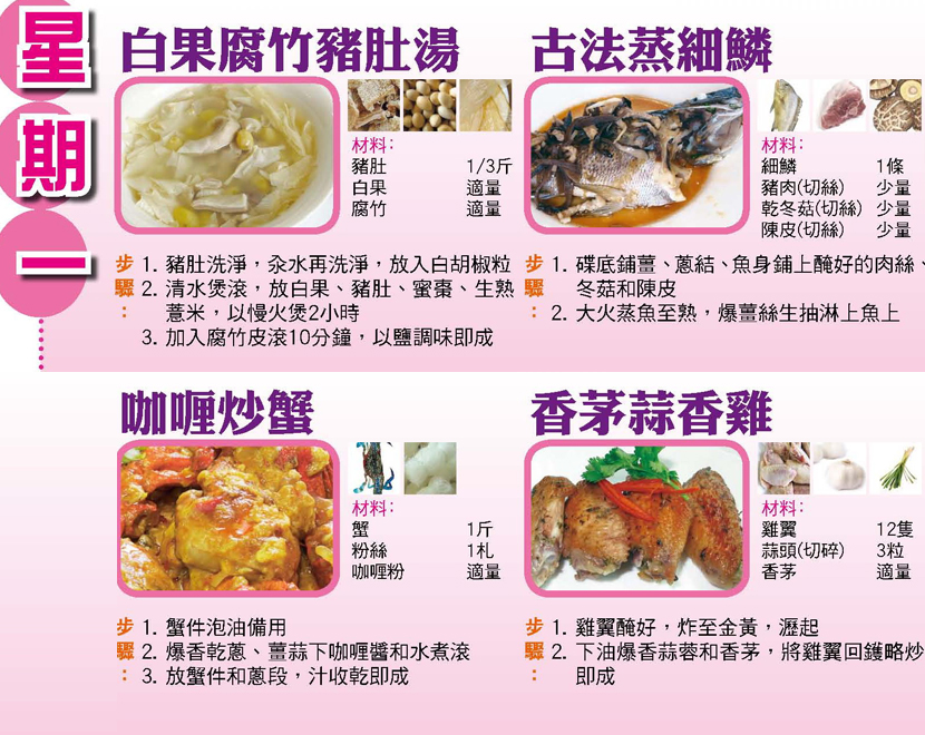 按此可閱覽英文、菲律賓文及印尼文食譜