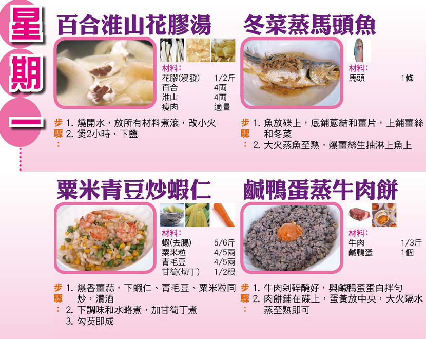 按此可閱覽英文、菲律賓文及印尼文食譜
